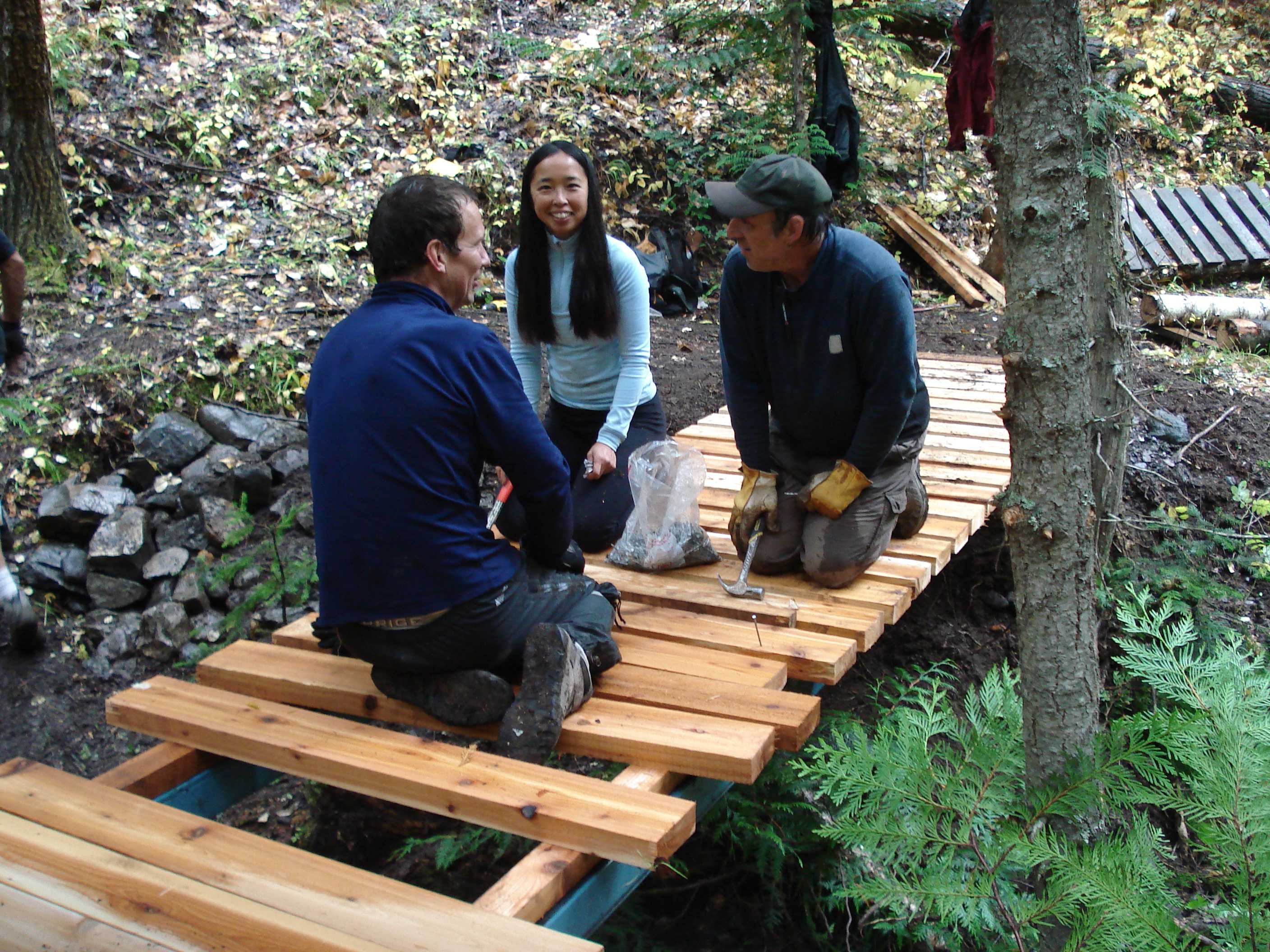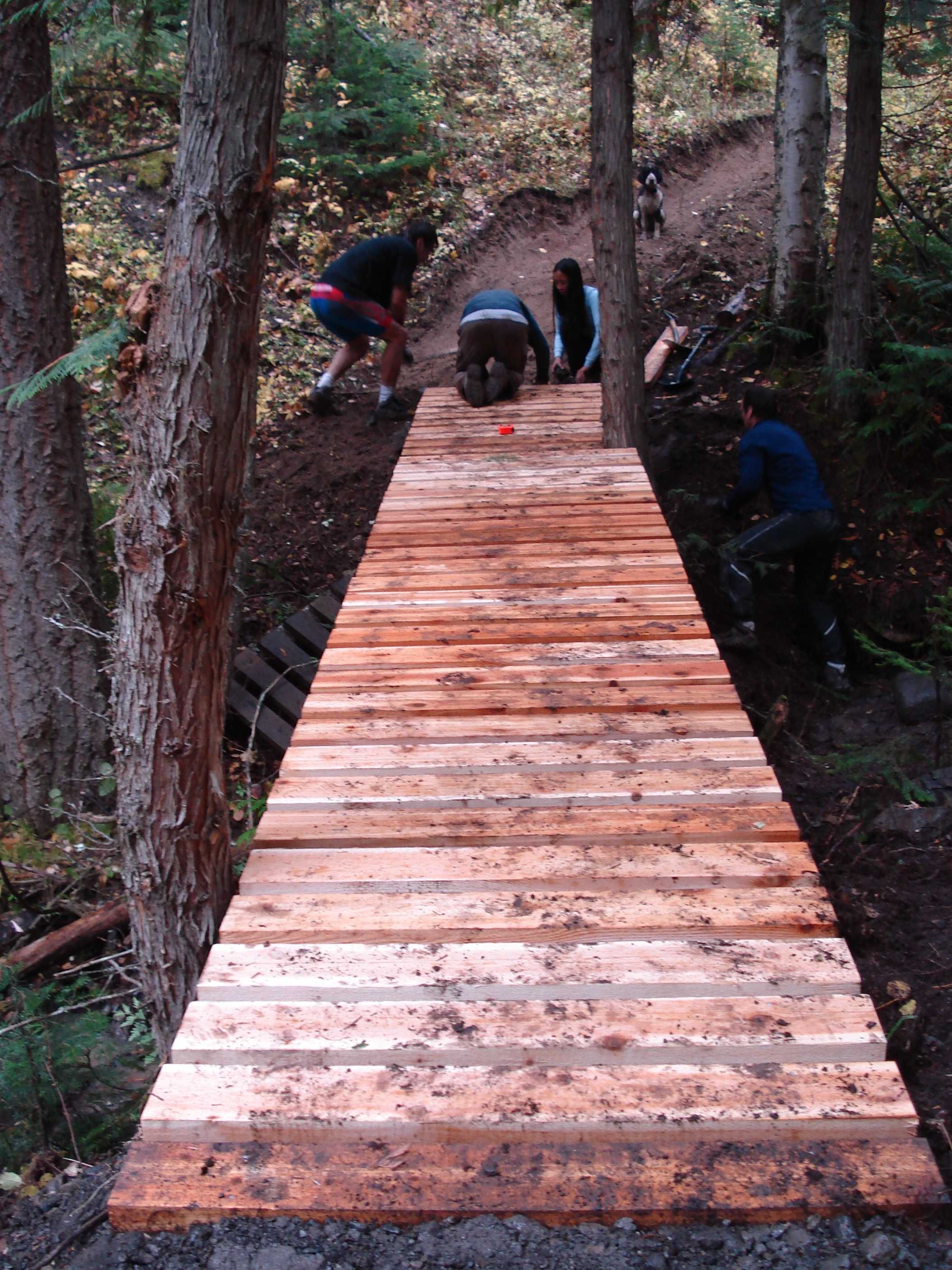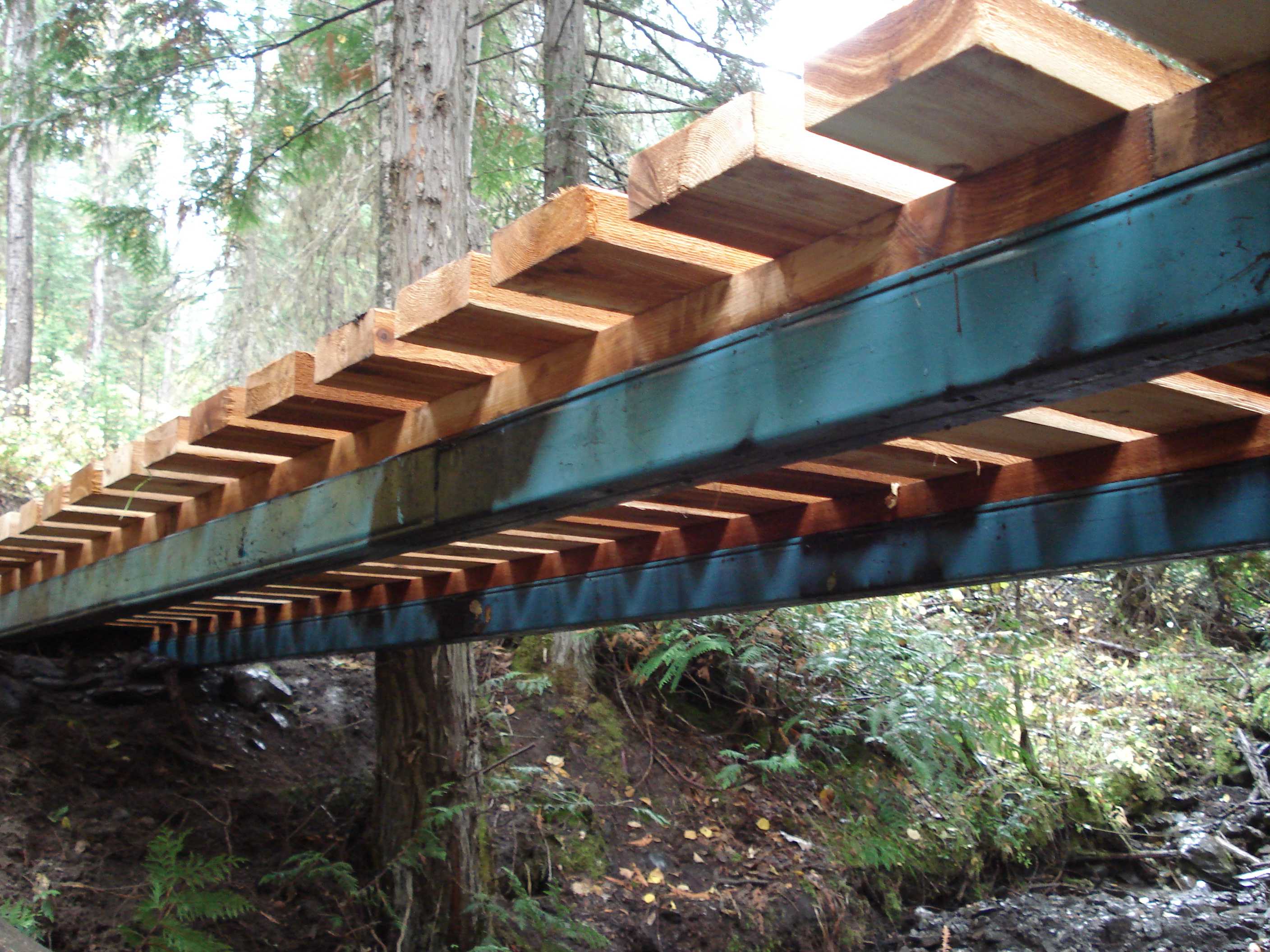 The Fernie Trails Crew has been busy clearing out the Coal Discovery Trail the past two weeks. This weekend we used Bighorn Helicopters to sling in 5 loads of bridge beams and decking and built two of three bridges going in on 2 kilometers of new single-track. The cross-country single-track now goes northward nine kilometers towards Hosmer. Can return on Ridgemont Road or on the Hosmer Powerline 4 X 4 road.