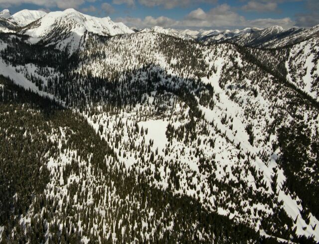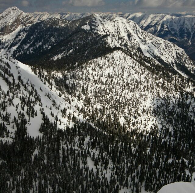 Did a snowshoe trip up Tunnel Creek to the new Tunnel Creek Hut on on December 3. Had to walk the first kilometer up the road and then used the snowshoes for the next 4 km. The steady climb to the Hut from Highway 3 took just over 2 hours for the 5 km (3 miles) and 760 meters (2500′) of elevation gain. There is about one meter of snowpack at the hut and skiing above should be very good. The Tunnel Creek Hut is at 1715 meters (5625′) elevation, about the same as Lost Boys Cafe (1725m) at the top of the Timber Chair (Fernie Alpine Resort). Generally a nice safe route up to the hut before the serious avalanche terrain is encountered. Tunnel Creek Hut is above the headwall at the base of SunnySide slope which offers 1000 foot ski runs.