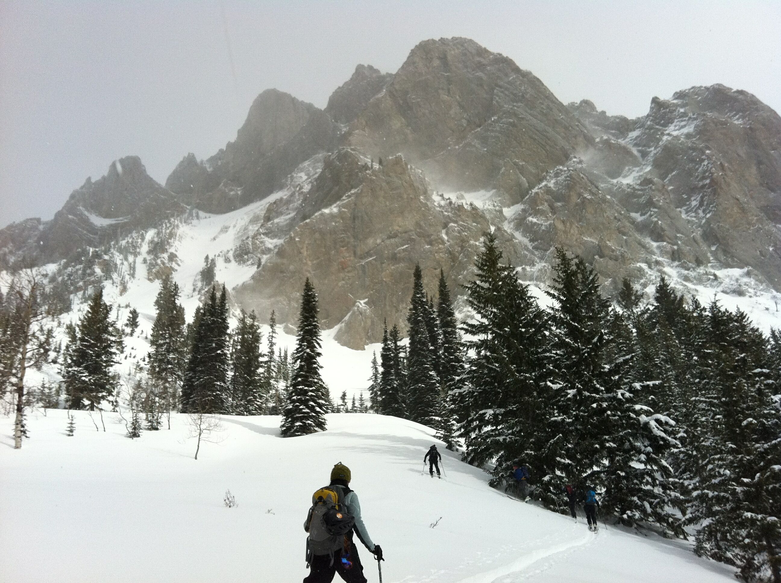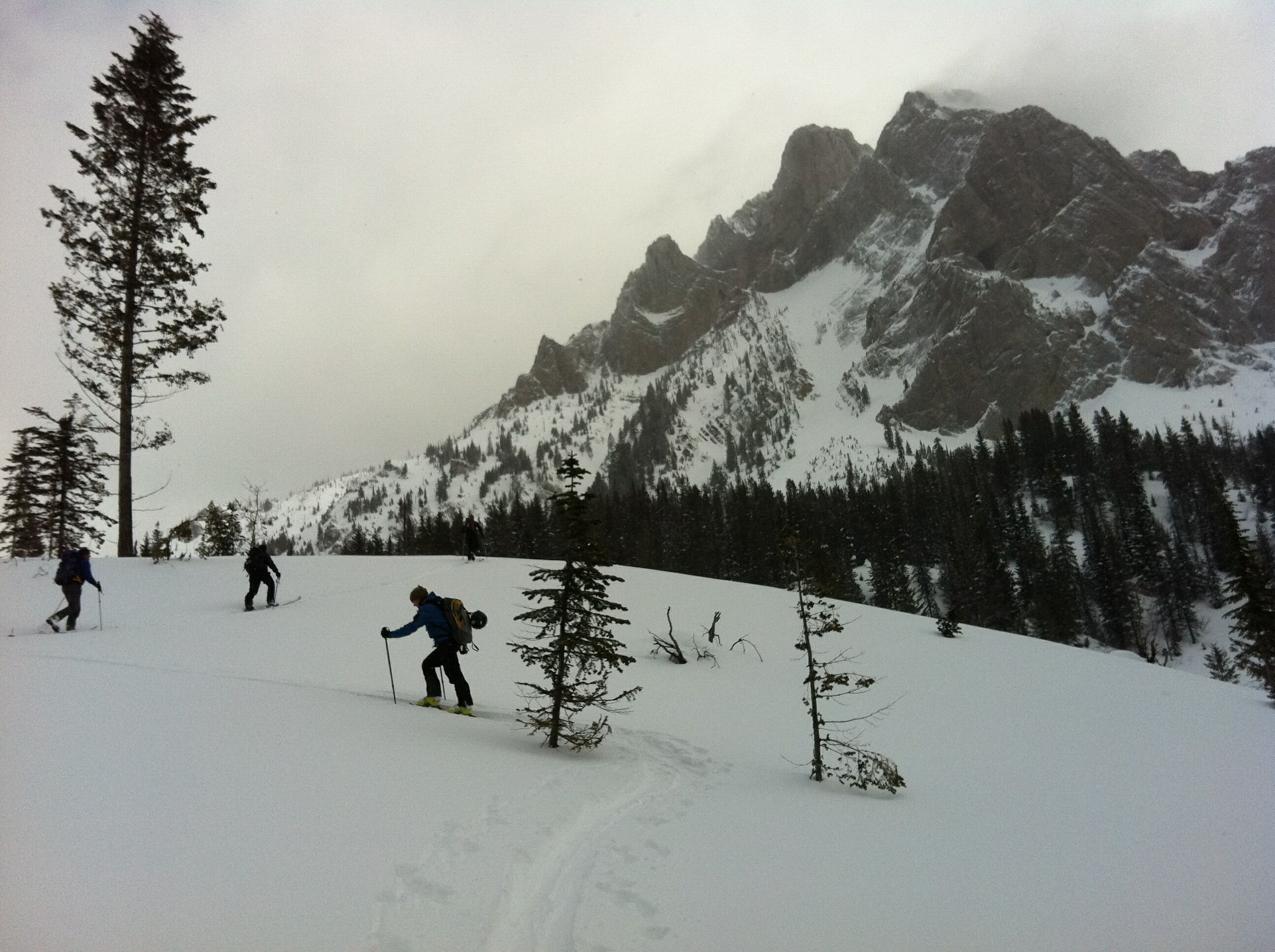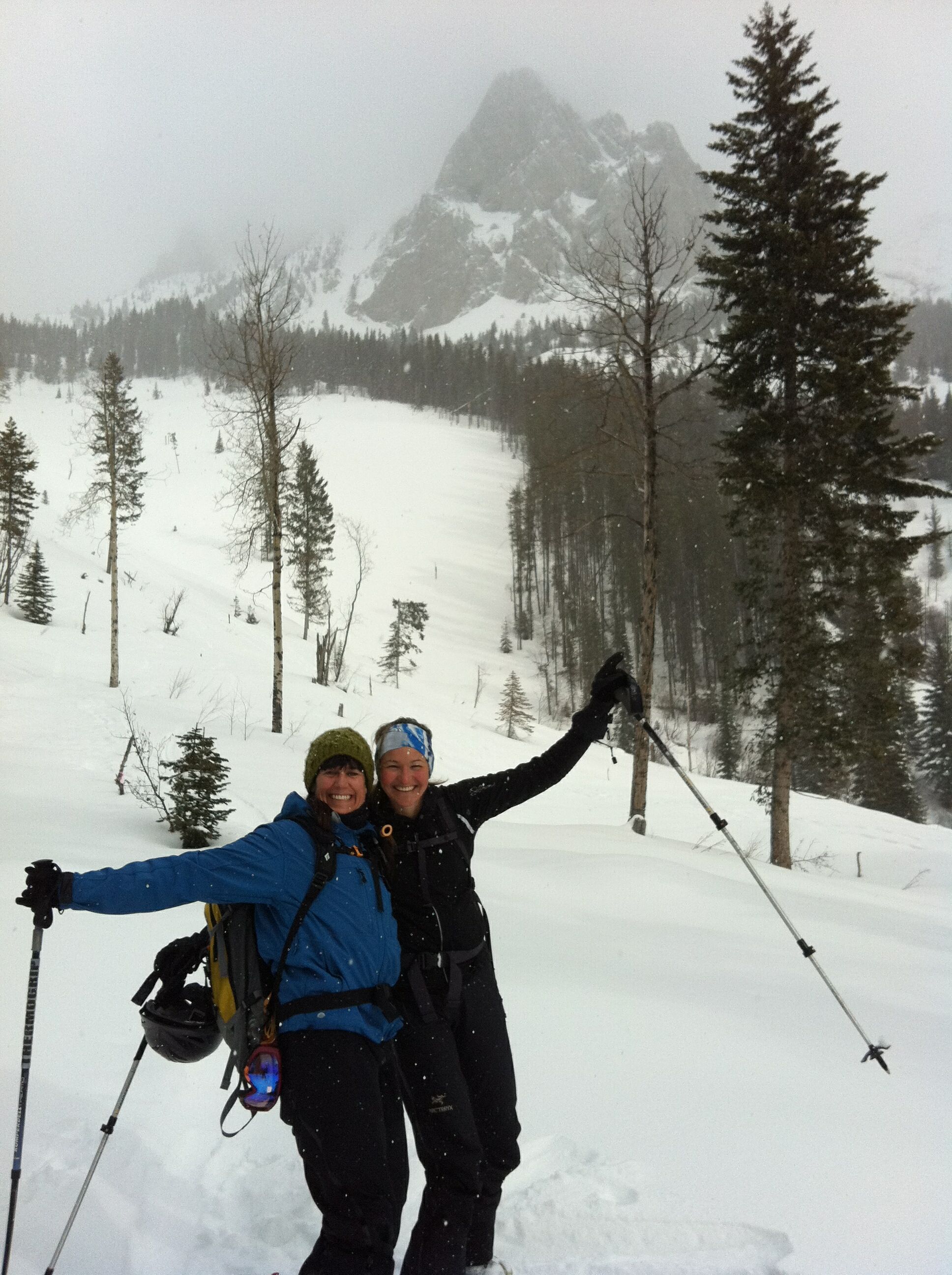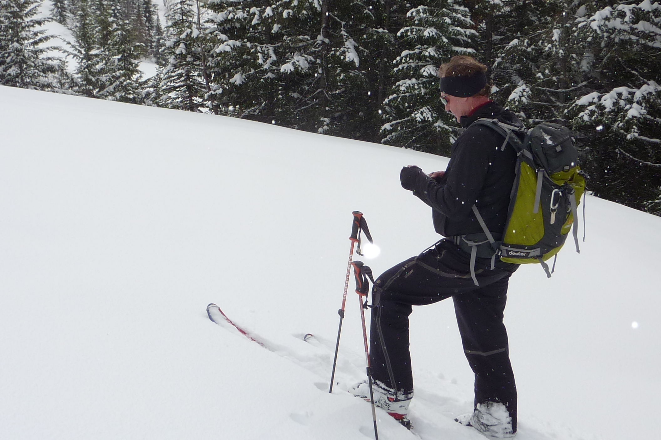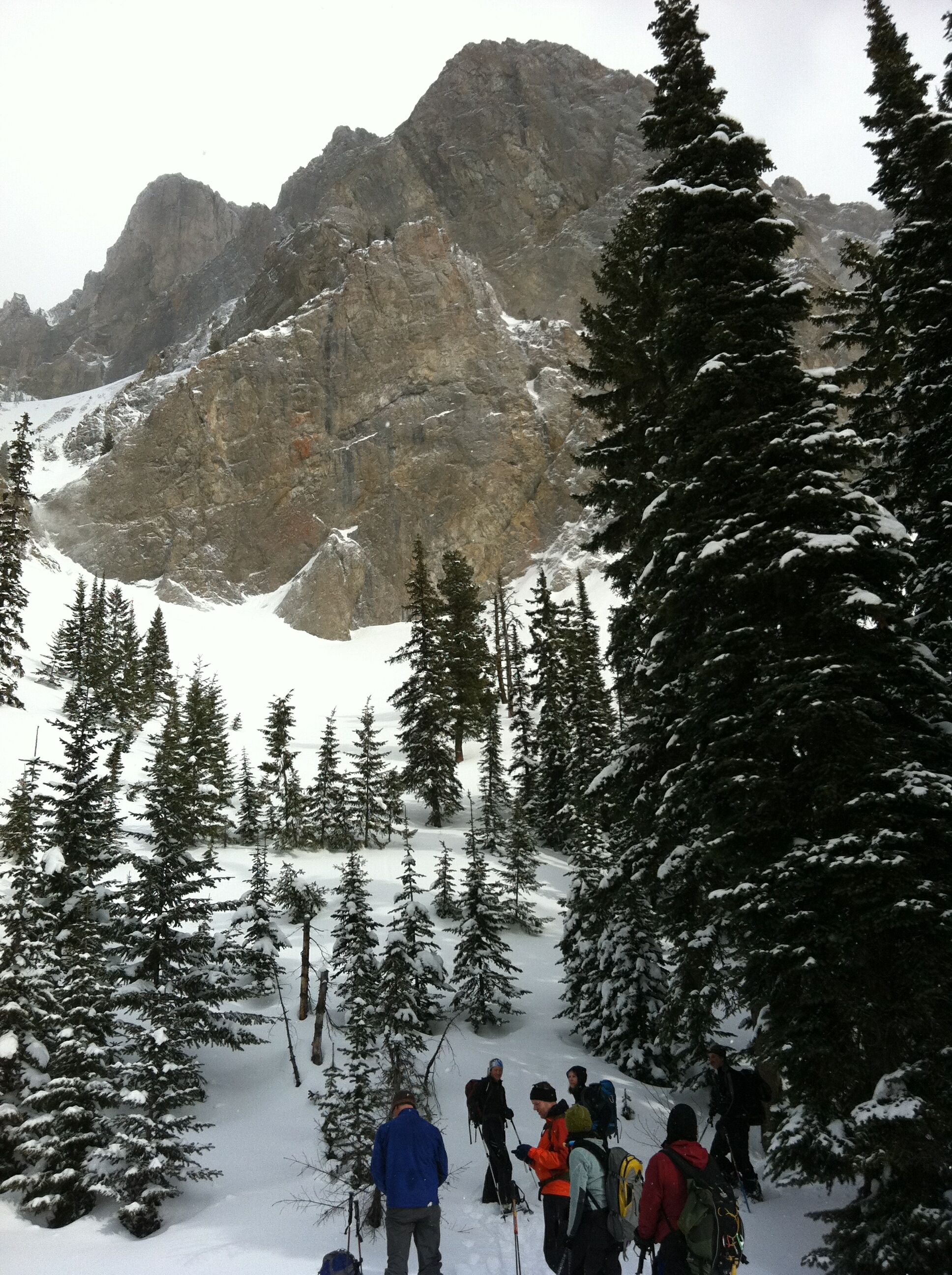 Group of eight of us made some nice turns today under the Ghostrider Peak on Hosmer Mtn. The clear-cuts below the cliffs are pleasant 20 to 30 degree slopes and the alpine just below the rocks increases to 35 degrees. Snowpack is highly variable between 1.5 meters down to .5 meter on the windblown exposed slopes. Had 15 cm of powder on top of the solid base and the avalanche hazard was significantly higher below the cliffs (shallow snowpack with depth hoar under the crust). Climbed up to 1800 meters elevation and got 400 to 500 meter descents back to the access road.