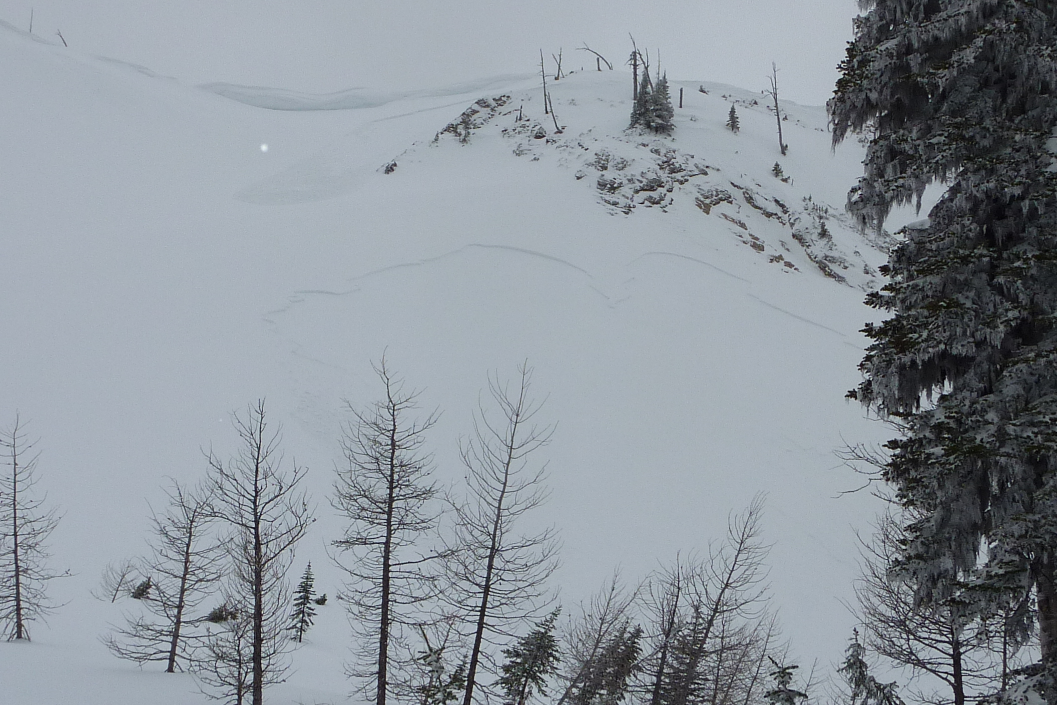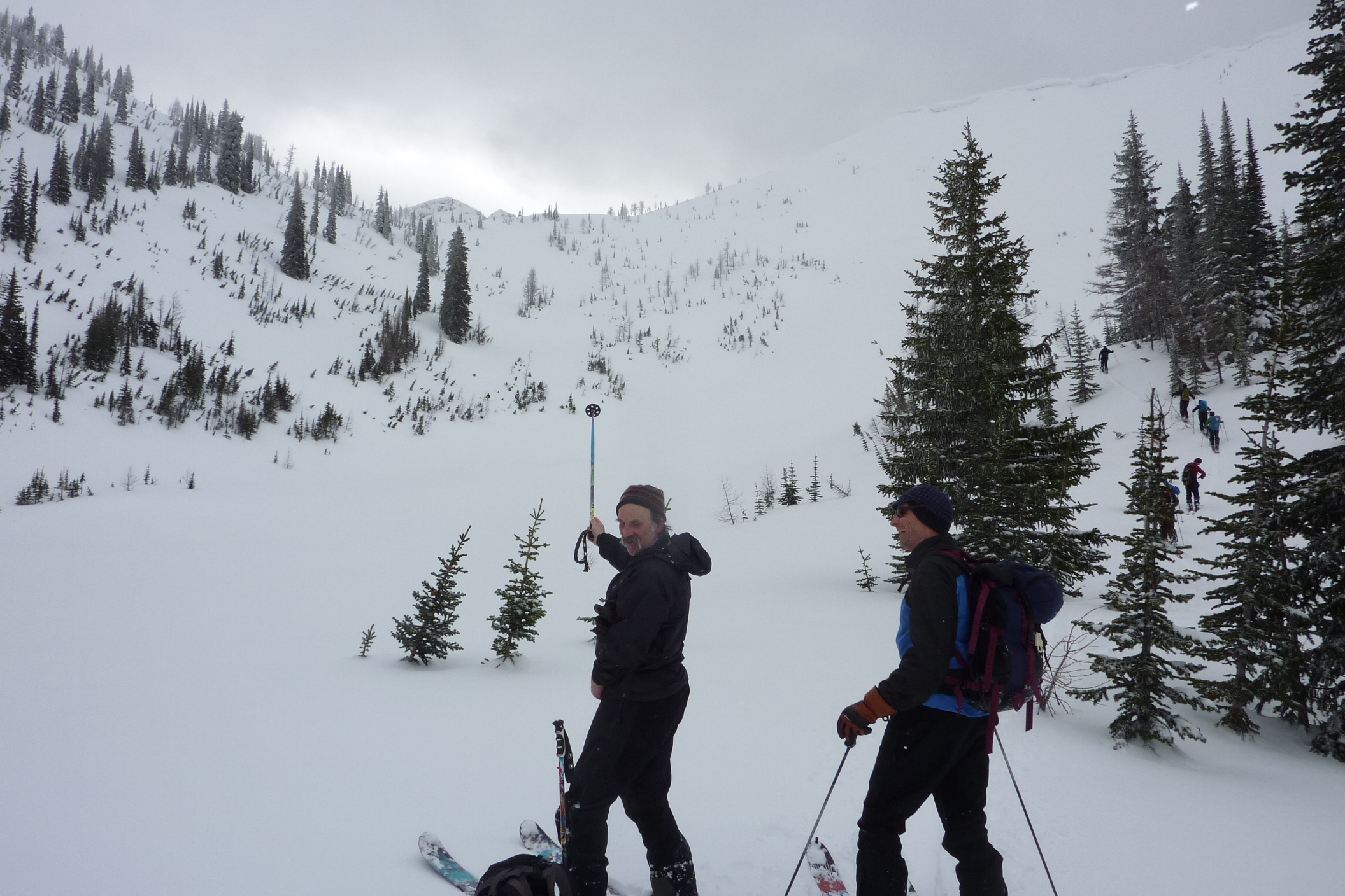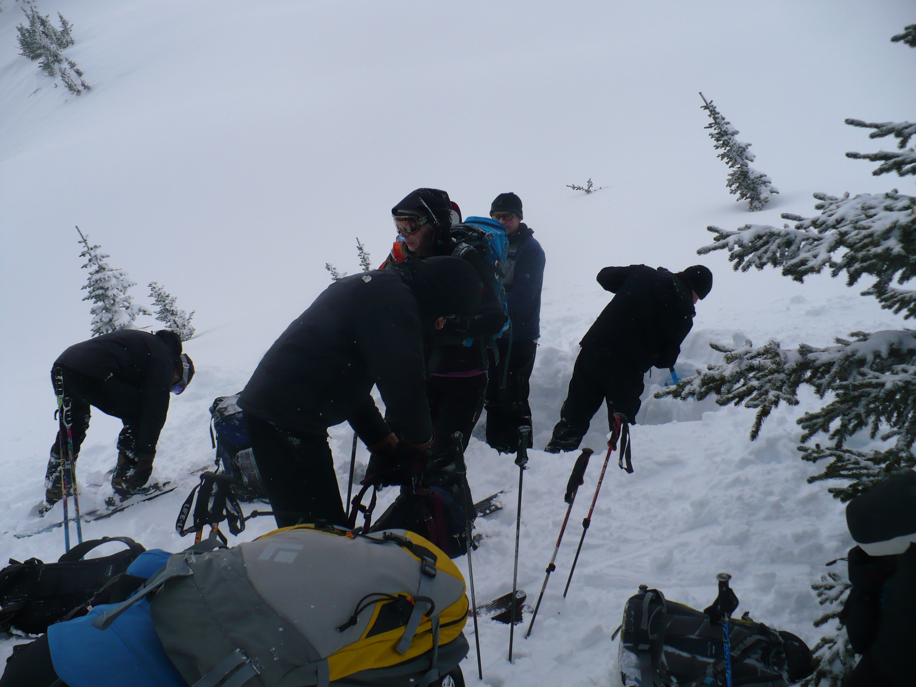 Ten of us took a Helicopter ride into the Three Sisters for a day of ski touring. Landed at 2208 meters in Fairy Creek Meadows and did our snow evaluations before our first descent. Snowpack is 3.0 meters at 2200 meters elevation and has two surface hoar layers in the top 30 cm. We immediately realized we had a surface hoar problem with the 15cm to 30cm new snow on top. Throughout the day we released a dozen slides between class 1 and 2 and we had to be very careful and choose our terrain well. Unfortunately Fairy Creek Meadows is big mountain terrain and a difficult place to retreat from. All worked out well in the end and had very nice pow skiing on the shallower slopes on the way out. The steep alpine slopes are certainly a no go zone in the near future.
