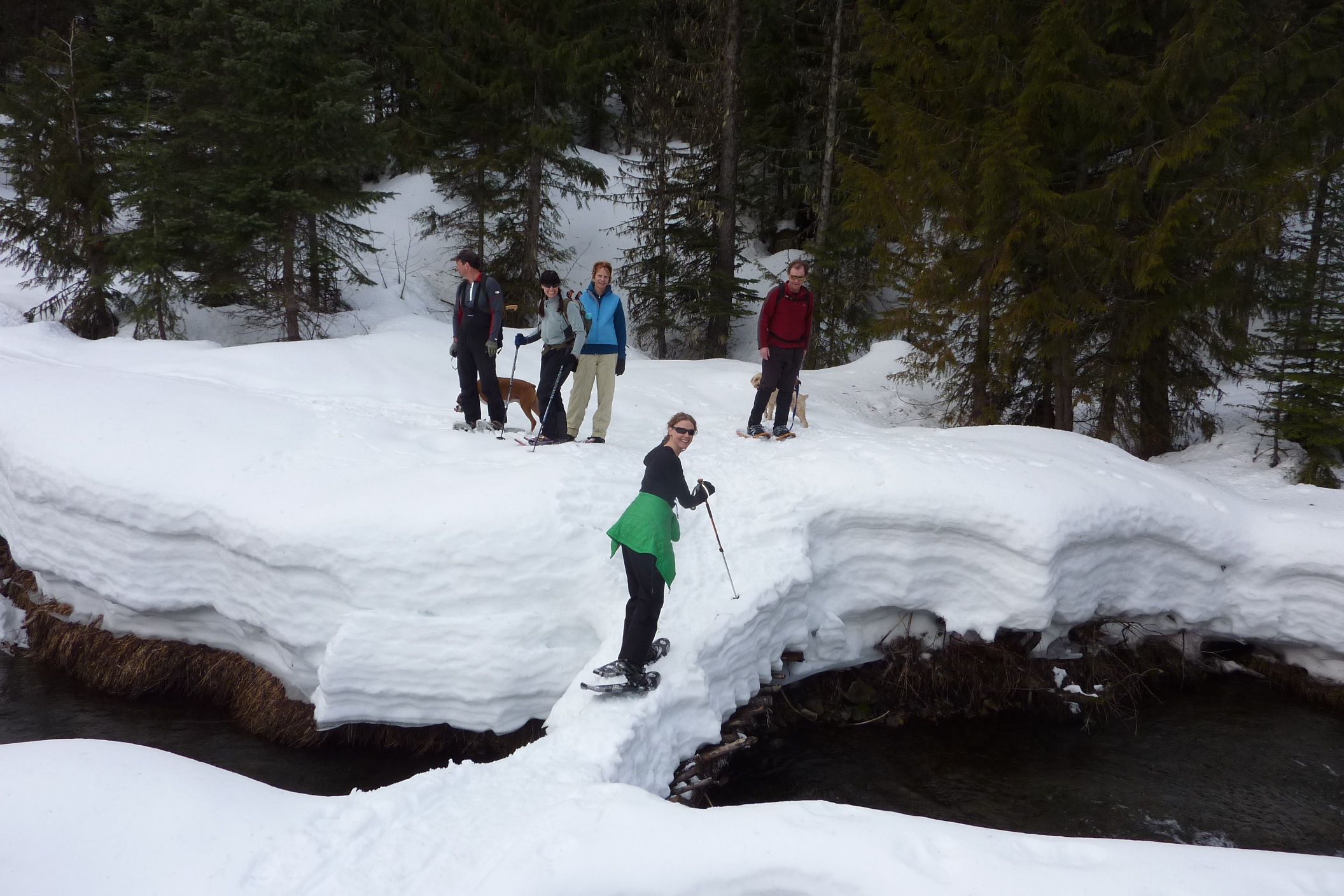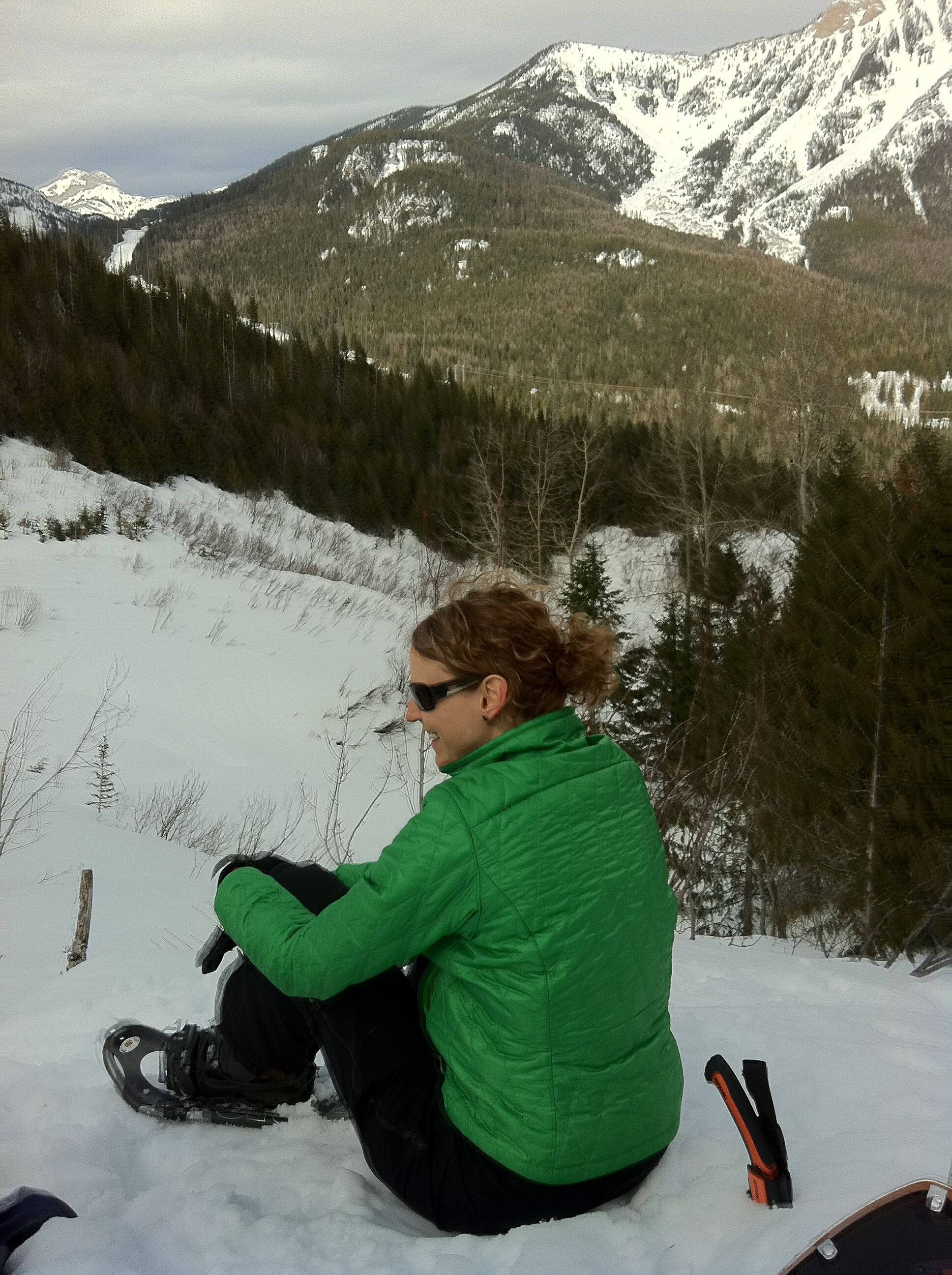 When the avalanche hazard goes to high its best to stay on the ski hill or go snowshoeing in safe terrain if you still need your backcountry fix. I have to repeat, use safe terrain, lots of incidents around Fernie in the past week and the High Hazard continues. The February surface hoar layers are very reactive and up to one meter slabs are being triggered by skiers and sledders. On this trip on Saturday, March 10th our crew snowshoed up Orca Road and did the annual brush cleanup with hand saws. Easier exit now for skiers returning from Thunder Meadows Hut via Orca Bowl.