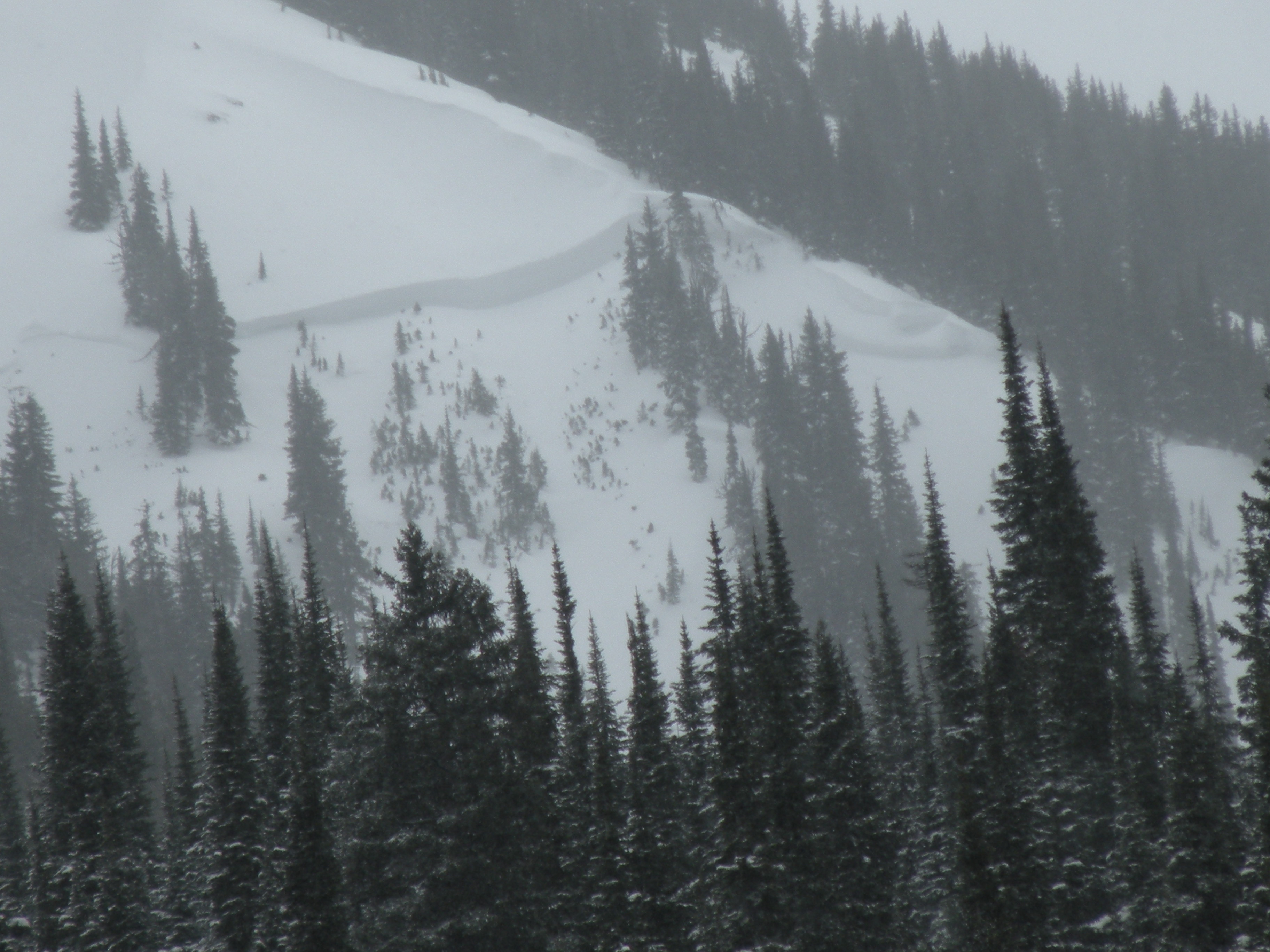 This photo of deep slab NW asp 2240m near McClatchie junction – big propagation, looks like the Feb 9 surface hoar layer and must be a 3m crown – we think that the ‘big Spring lines’ are a long ways off in terms of trusting the snow pack!