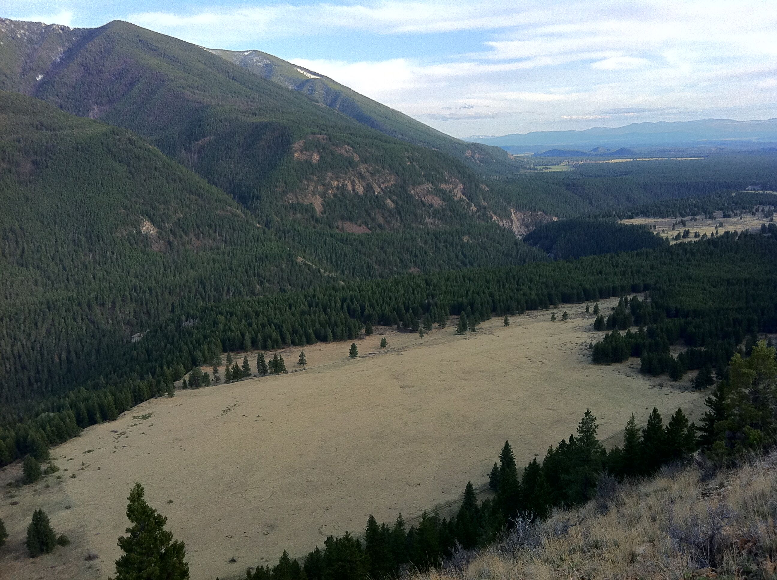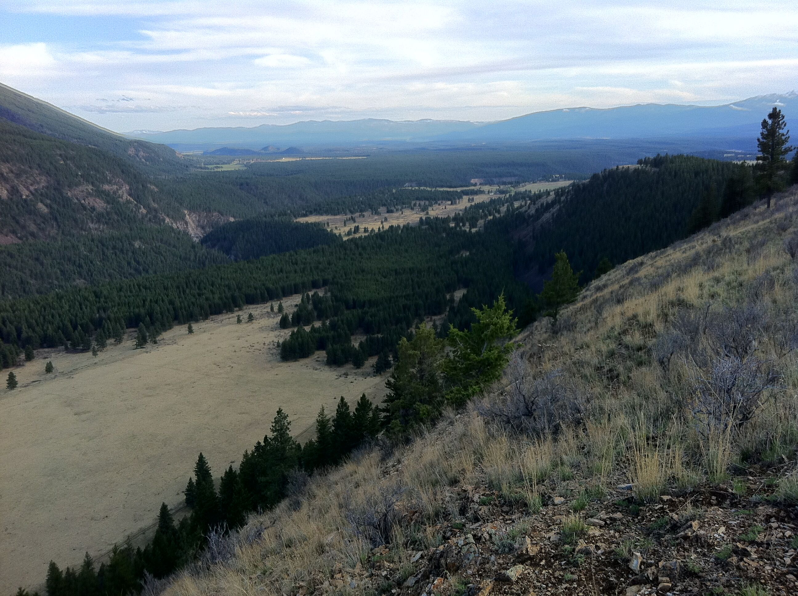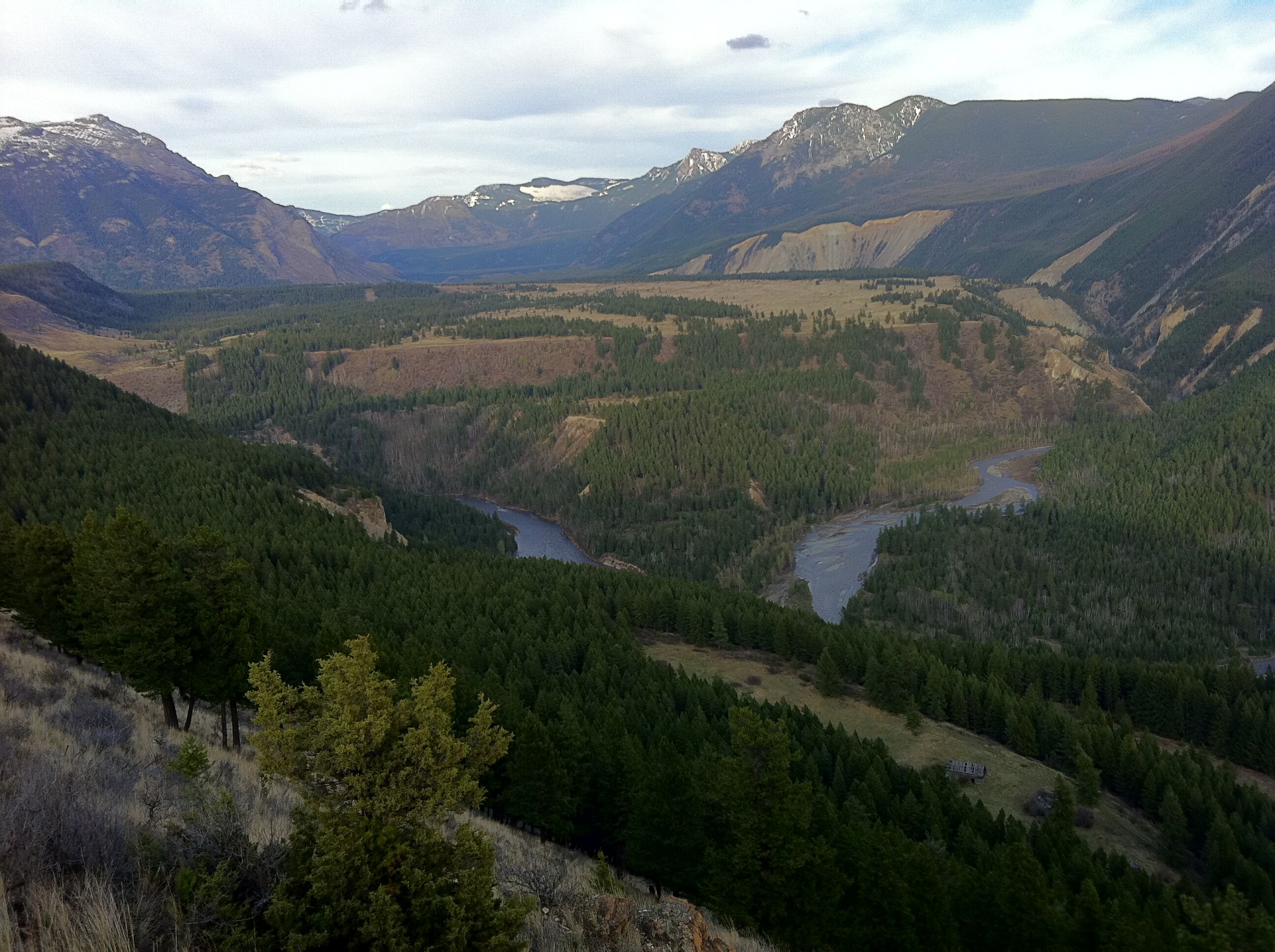 While at the summit make sure to stop at the Ingy Cell Tower and walk west 200 meters to an excellent viewpoint that overlooks the confluence of the Wigwam and Elk Rivers. Check out these pictures that are taken from the viewpoint and look east toward the Wigwam Flats, at the confluence of the Elk River and Wigwam River. Just below the viewpoint you can see the old Ingham Farm buildings in the open meadow at the base of the hill.