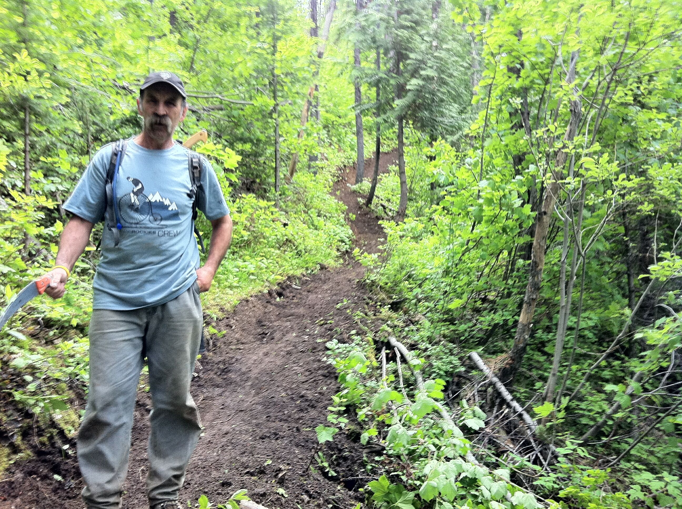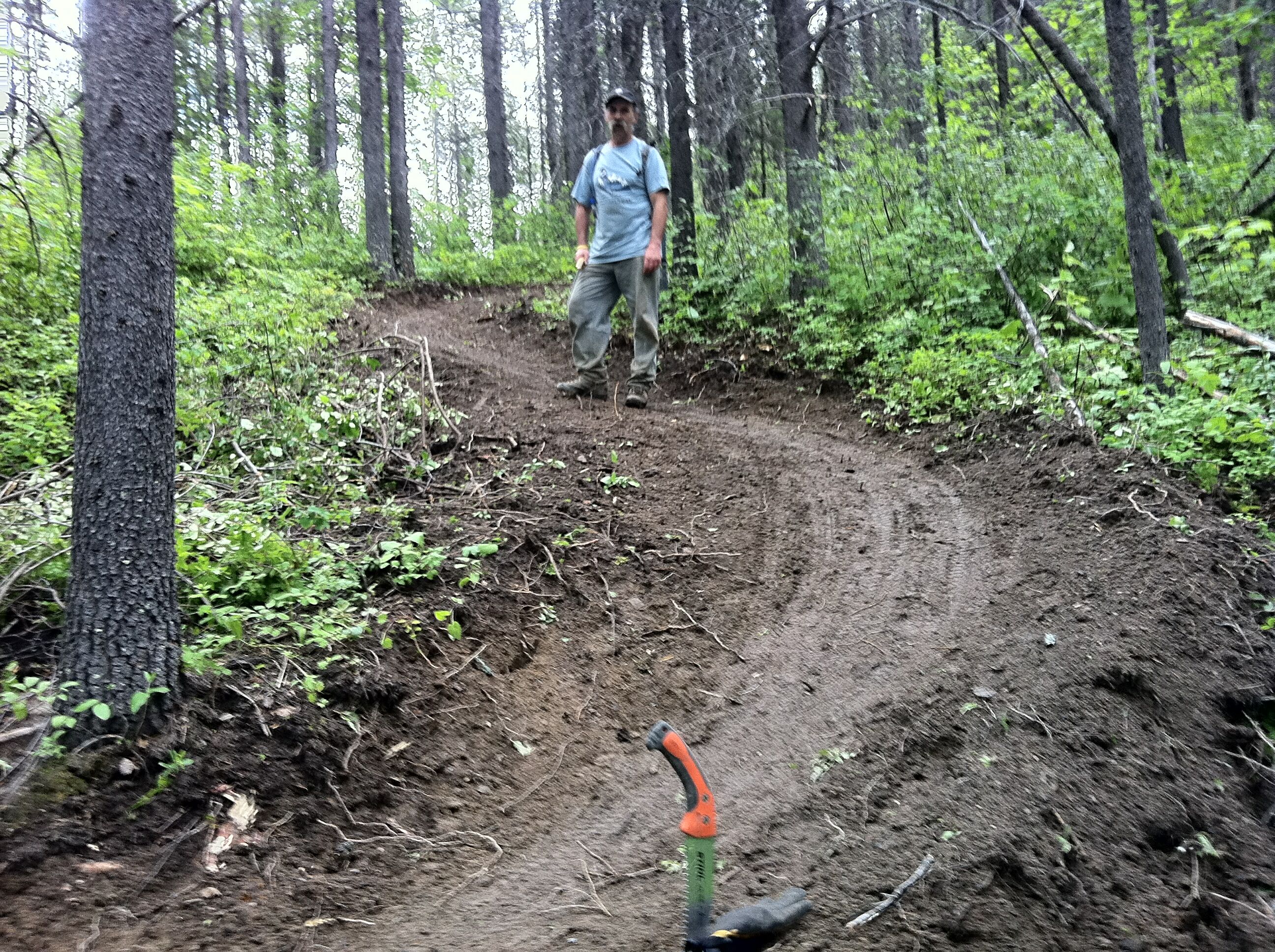 The crew have been spending a lot of time cutting bush and moving dirt on Hyper Extention. Between last summer and this rainy spring we have upgraded and bermed most of the trail to a faster flow. Should complete the process in the next several weeks.