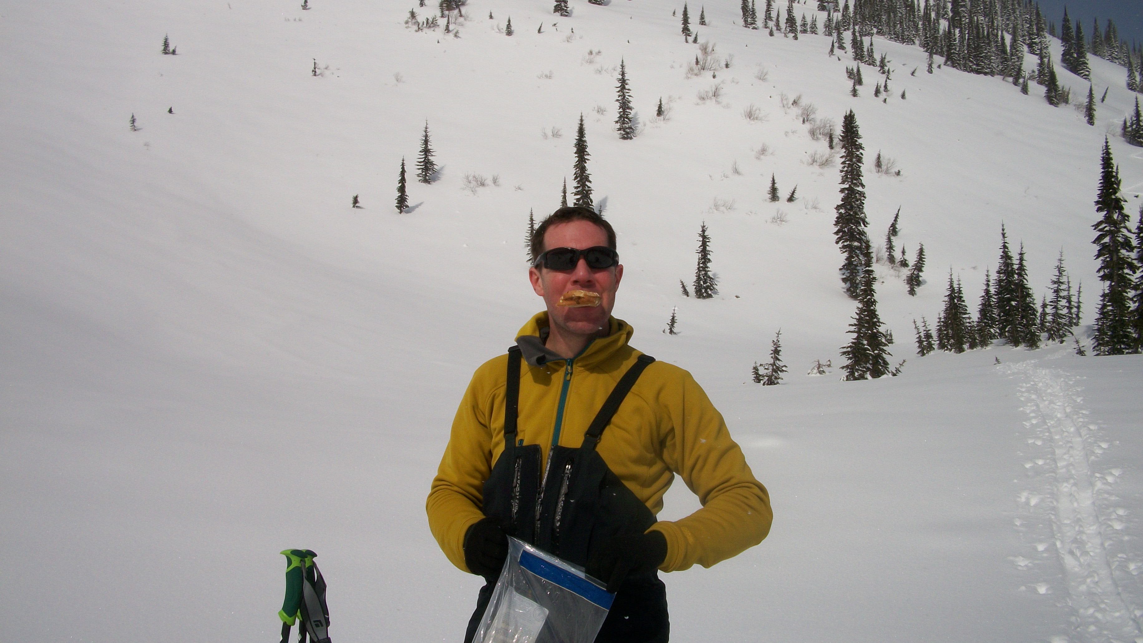 Stephan Inhaling a peanut butter sandwich before the climb.