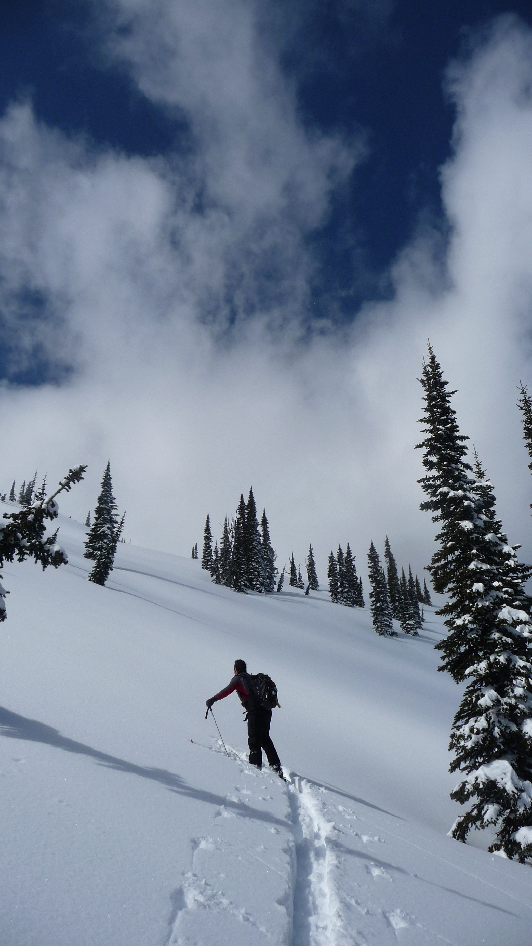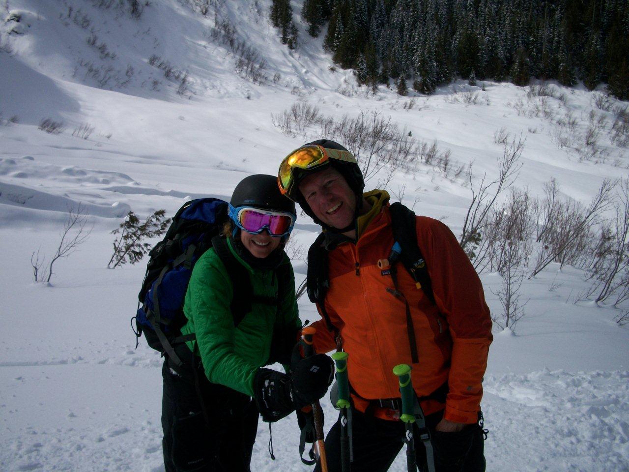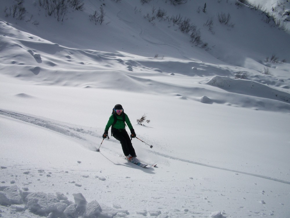 We’ve been doing lots of ski touring this season, but just haven’t taken the time to take many pictures and write any posts. By Sunday the 60cms of fresh that we received on Thursday and Friday was thoroughly shredded on the resort. So Trina, Stephan and myself decided a little tour from the top of the Bear chair over to Big Steep Mother Bowl might just be the ticket to satisfy our lust for fresh lines. We ended the day with an epic run down Aunt Hilda’s run into Orca Bowl. Aunt Hilda’s is a 37° north facing aspect with about 2000 feet of vertical, there were face-shots a plenty! After that it was a quick scoot down to Cedar Valley road and a 10-15 minute skate on the groomer track to Island Lake parking lot. Here are some pics of the day’s adventure.