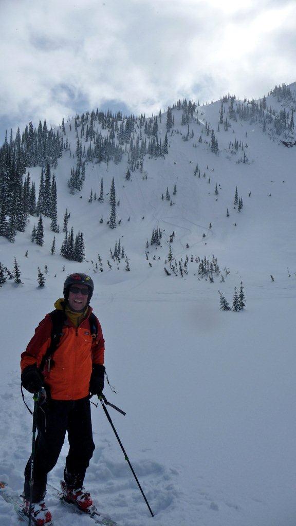 Looking back at our tracks dropping in from Liverwurst/ Big Steep ridge.