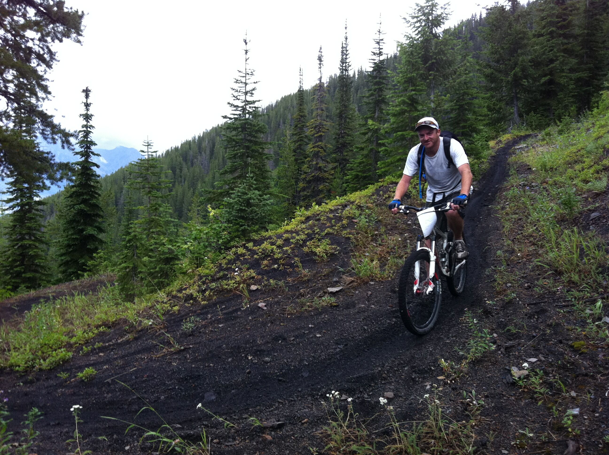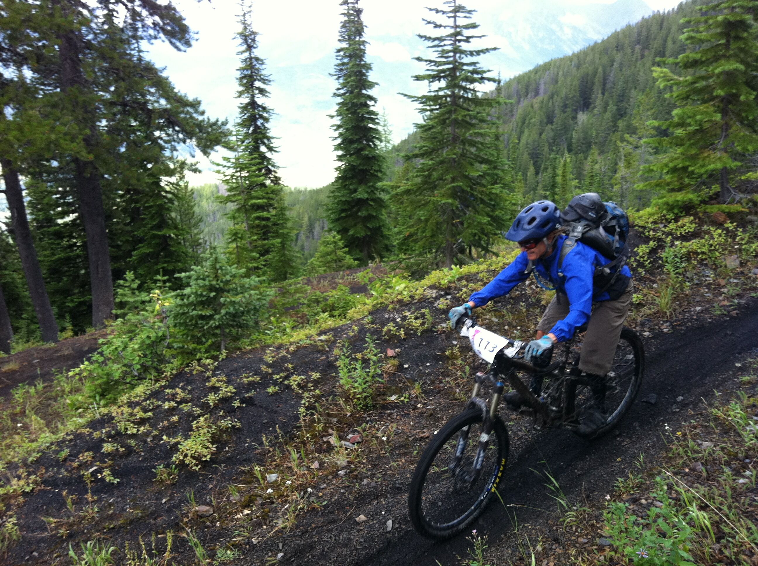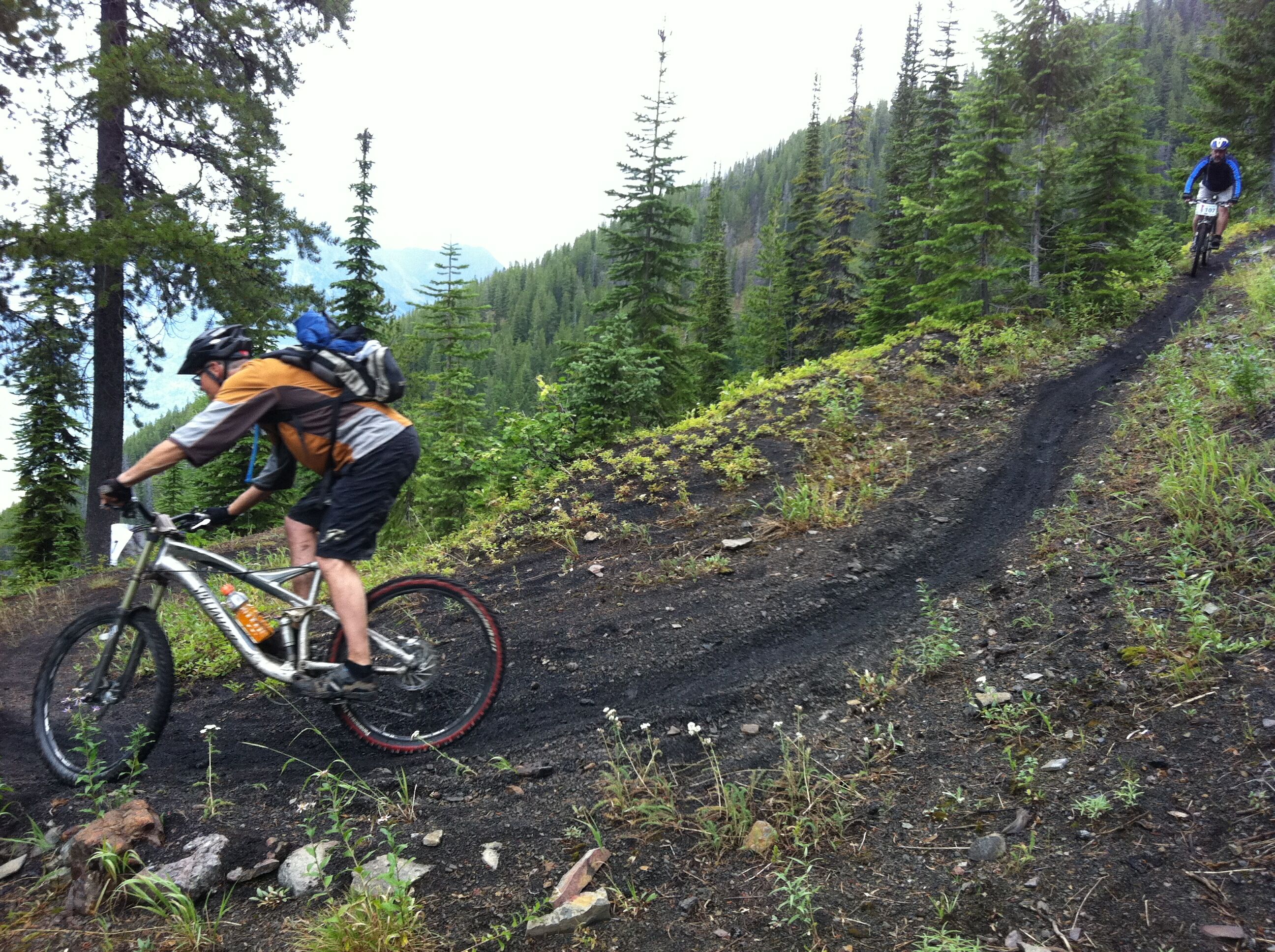 The weather threatened us with dark clouds but the Fernie Trails and Ski Touring Club pulled off the 4th annual bike ride on Porky Blue Trail. One hundred and eighteen riders and a dozen volunteers were all accounted for at the end of the ride and all had a great time at the FERNIE HOTEL beer garden. The rain from the day before made for near perfect trail conditions with good traction, no dust and cool cycling. Before and after the TransRockies event that used the trail last weekend the FTASTC buffed up the trail and added new berms and diversions to improve the difficult sections.