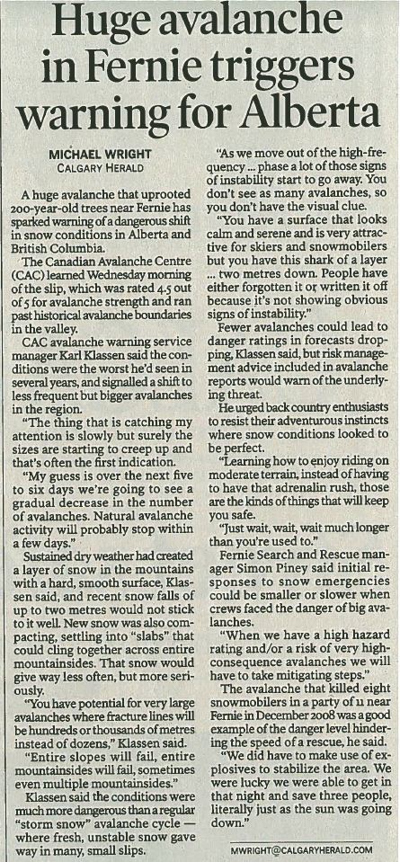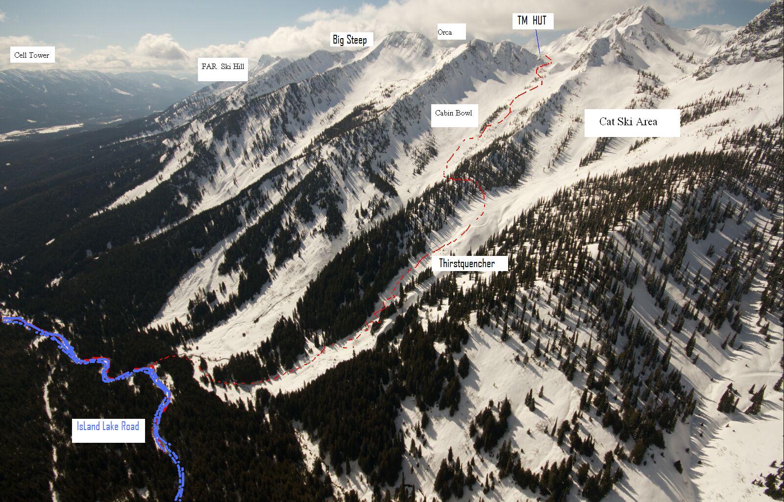 A very large avalanche storm released this week down the south side of Cabin Bowl from the Orca Rock starting zone. It carried on across Lizard Creek, up through the Old Growth Forest and onto the Cedar Valley road access to Island Lake Lodge. No people involvement reported.