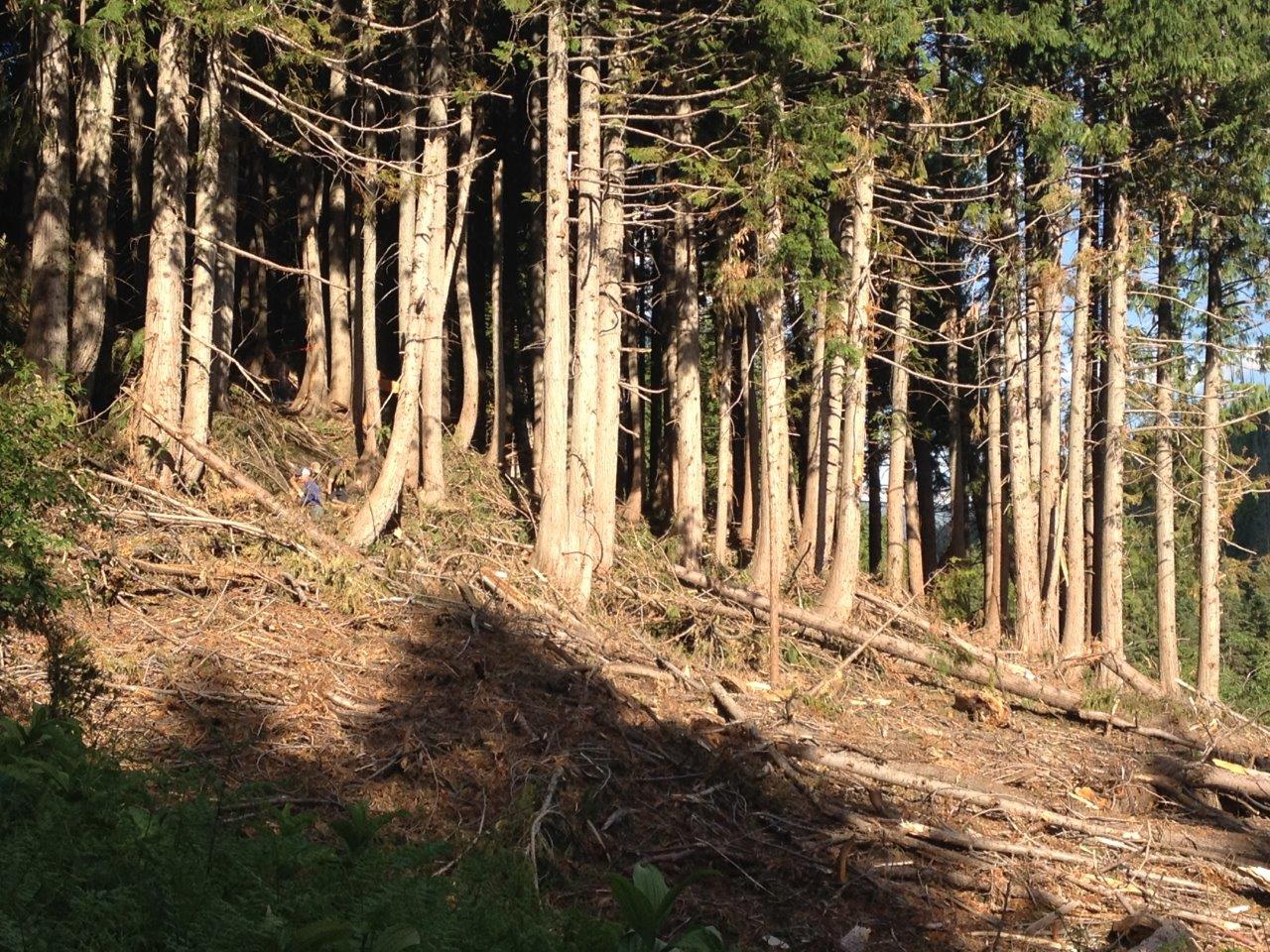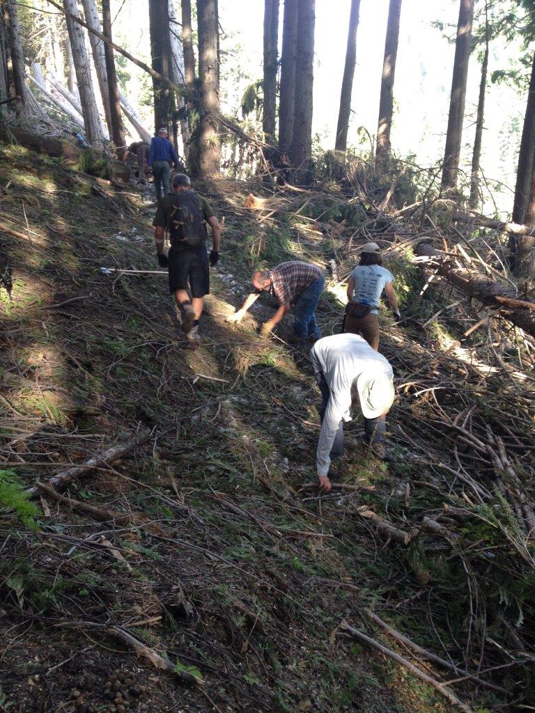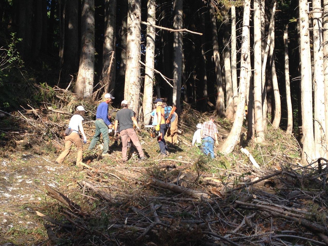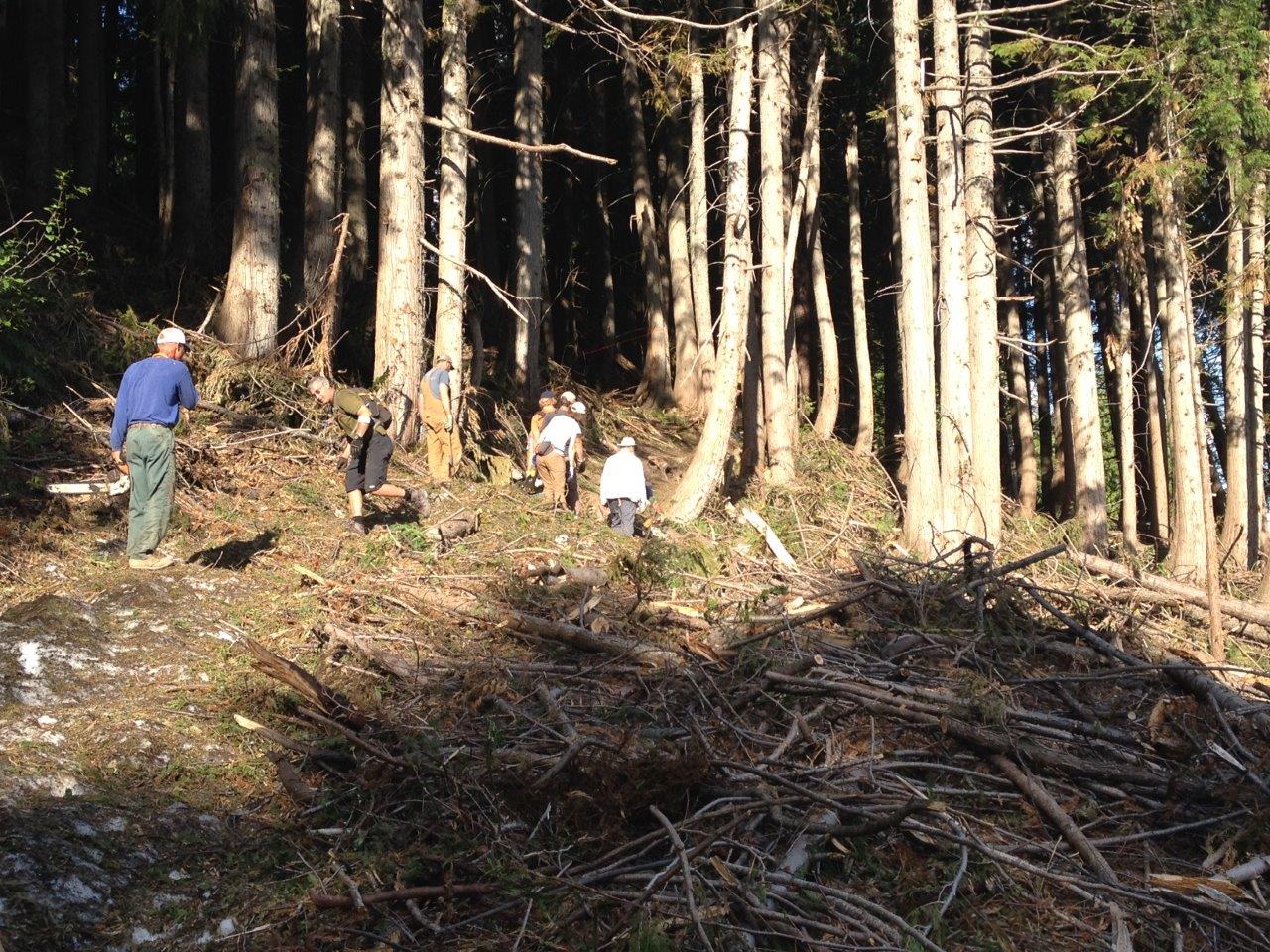 Here are a few photos (before and during, no afters) of the Thursday evening cleanup of Cabin Trail and Old Growth. It’s ready to hike!